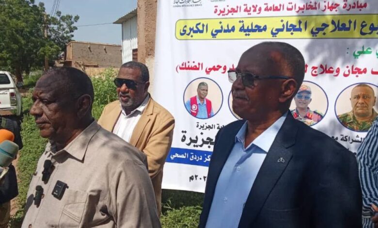 من جانبه، أعلن اللواء أمن عماد سيد أحمد، مدير جهاز المخابرات العامة بالولاية، أن المبادرة تأتي في إطار مبادرات الجهاز للسيطرة والقضاء على نواقل الأمراض، وجدد الالتزام باستمرار الجهود لتوفير الفحص والعلاج المجاني في كل المحليات.