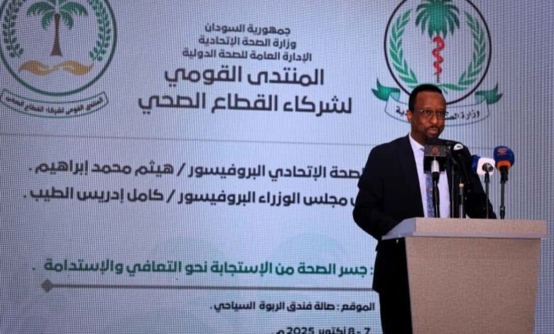 وقال الإعيسر، لدى مخاطبته اليوم الجلسة الافتتاحية للمنتدى القومي لشركاء القطاع الصحي، إن هناك شراكة عميقة بين وزارتي الإعلام والصحة في تنفيذ العديد من الخطط والبرامج.