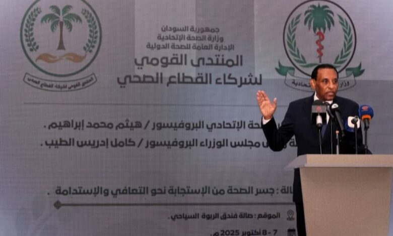 وشدد ادريس، لدى مخاطبته المنتدى القومي لشركاء القطاع الصحي ببورتسودان، على أهمية الشراكات الوطنية والدولية كجسر للعبور نحو تعافي النظام الصحي واستدامته.