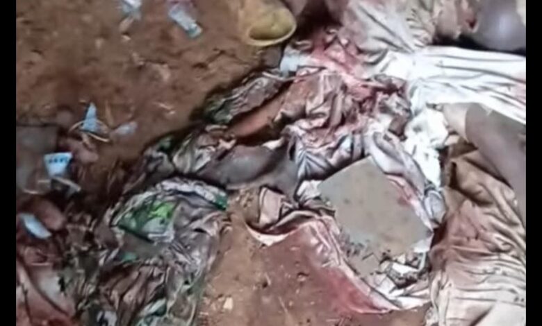 في وقت وثقت مشاهد آثار قصف نفّذته مليشيا الدعم السريع على مركز لإيواء النازحين للمركز واشلاء الجثث وتناثرها.