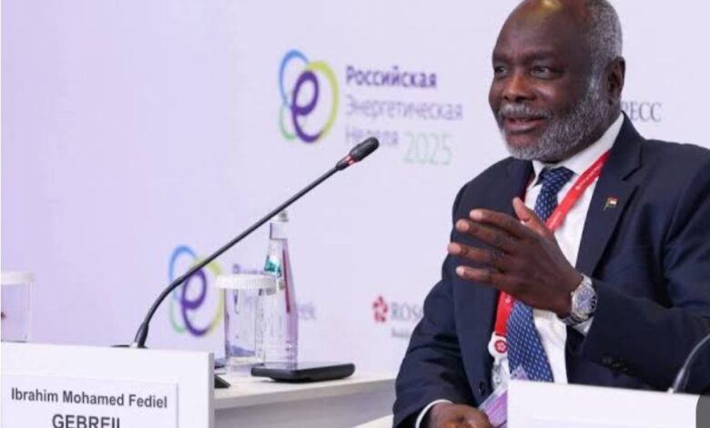 كما أشار إلى أن إنتاج السودان من البترول يبلغ حاليا «25» ألف مليون برميل، و أوضح أن زيارته إلى روسيا تهدف إلى زيادة إنتاج النفط والتعاون في مشروعات الكهرباء.