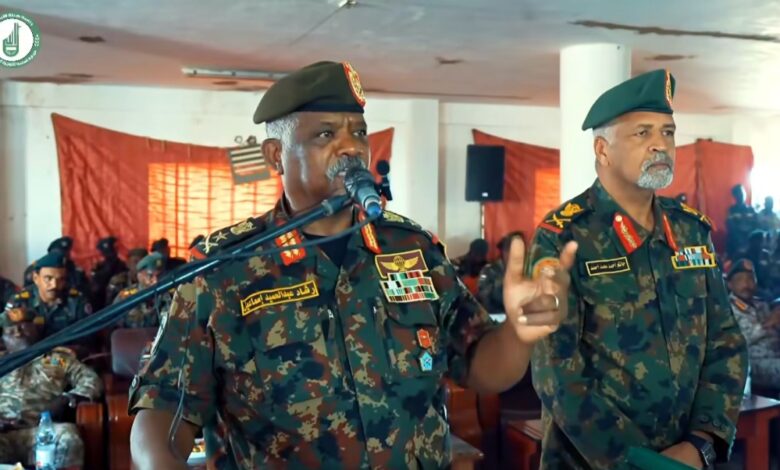 وتابع: “في القوات البرية وسلاح المدرعات والاسلحة المساندة للقوات البرية ماعندنا كلام غير نظافة البلاد من دنس المتمردين والمليشيا”.