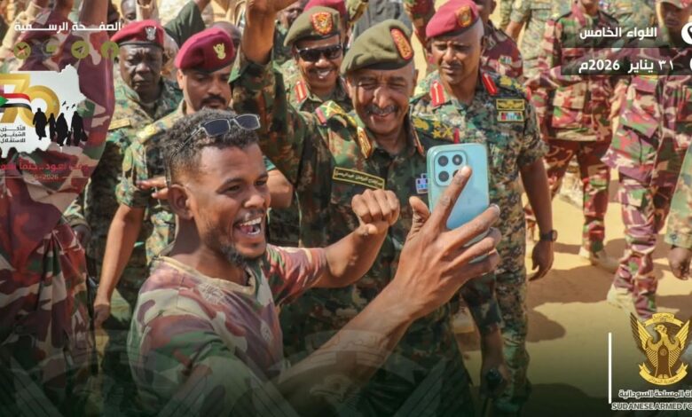 واستقبل الجنود البرهان بمعنويات عالية وحماس كبير وهم يلتفون هو قائدهم.