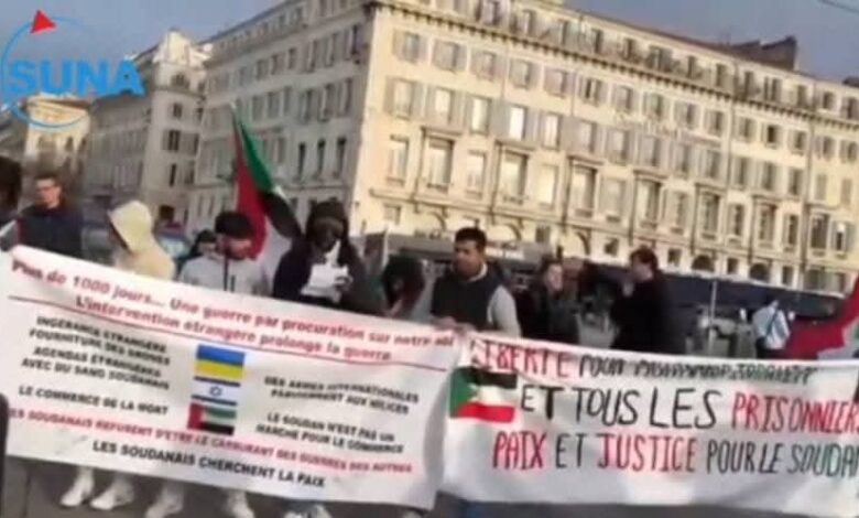 نظم سودانيون مقيمون في دول أوروبية وقفة احتجاجية في مدينة مارسيليا الفرنسية بمناسبة مرور 1000 يوم على بداية الحرب في السودان، واحتجاجاً على صمت المجتمع الدولي إزاء ممارسات وانتهاكات مليشيا الدعم السريع المتمردة في حق المواطنين.