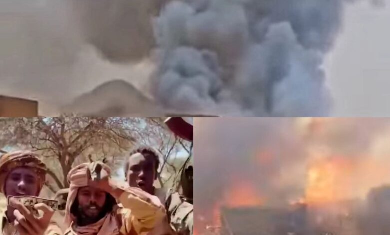 وأظهرت مقاطع فيديو قام بتصويرها عناصر المليشيا اشتعال حريق في منازل القرية فضلاً عن اقتحام مقر إقامة موسى هلال والقيام بعمليات قتل جماعي وتصفية ونهب.