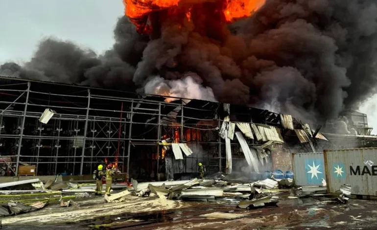 وأضافت الهيئة أنها تعالج تسرب مواد خطرة من داخل المنشأة نتيجة الاستهداف، مشيرة إلى أن احتواء الحريق بالكامل قد يستغرق عدة ساعات.