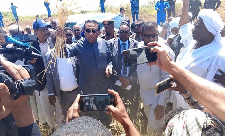 من جانبه أشار الطاهر إبراهيم الخير والي ولاية الجزيرة إلى أن زيادة الإنتاجية في محصول القمح جاءت بفضل الإلتزام بالحزم التقنية والمحددات الفنية للري وإنفاذ توجيهات رئيس الوزراء، معلناً أن الولاية مهيأة لزيادة الناتج القومي وتمزيق فاتورة القمح.